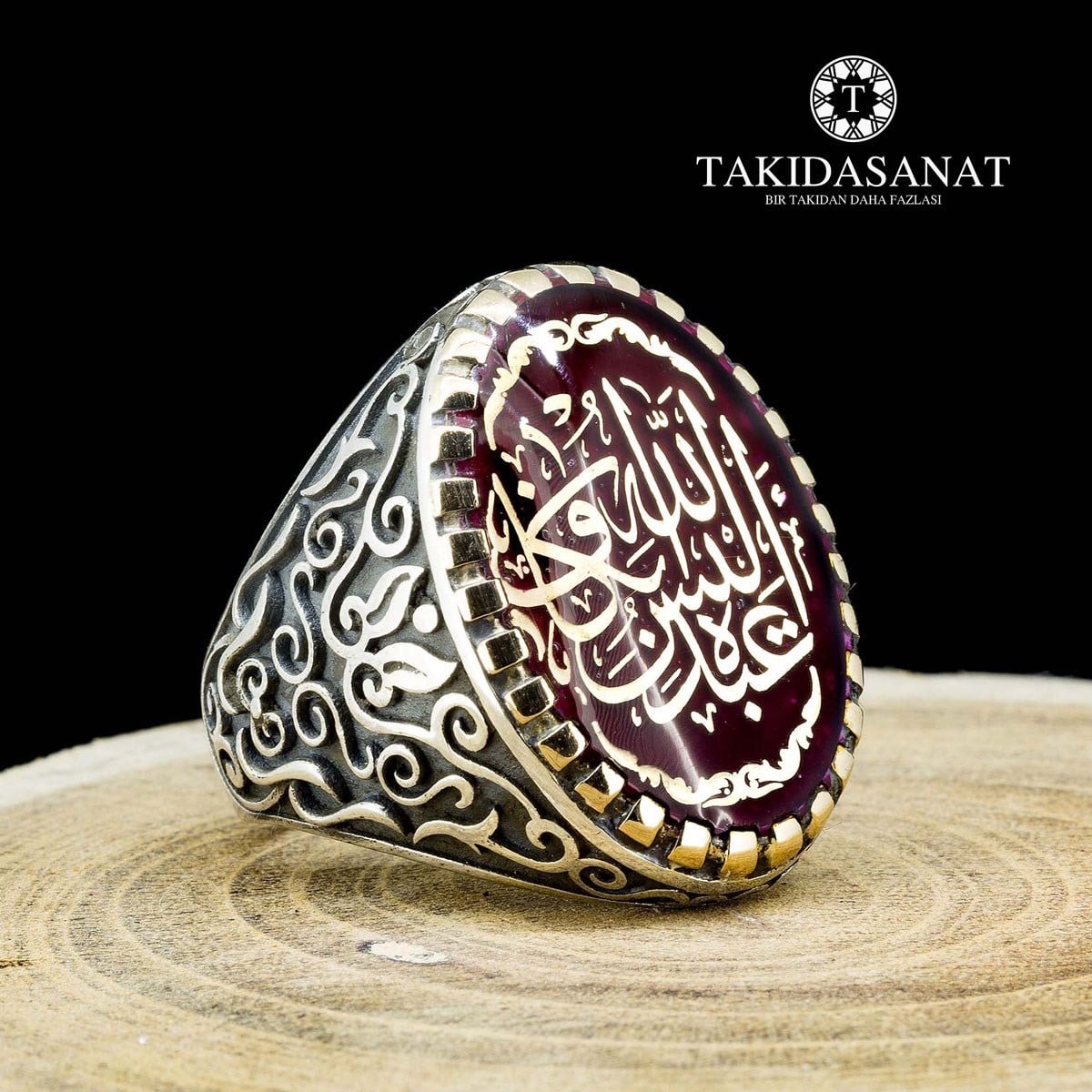 "ELEYSALLAHU Bİ KAFİN ABDEH" ALLAH KULUNA KAFİ GELMEZ Mİ ? AYETİNİN HAT SANATIYLA YAZILI OLDUĞU OVAL FORMDA BÜYÜK BİR GÜMÜŞ YÜZÜK