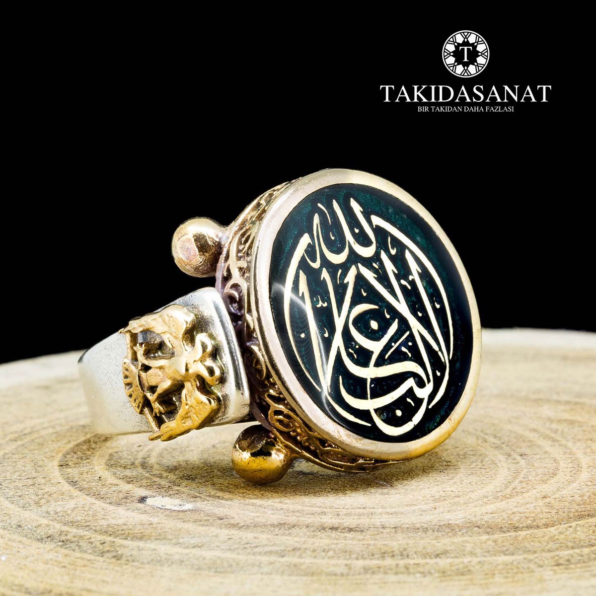 "La galibe illallah" Allah'tan başka galip olan (kazanan) yoktur anlamındaki celi sülüs hat yazısı yazılıdır, yan kollarda ise Selçuklu Kartalı kabartması bulunmaktadır, yarı el yapımı özel bir yüzüktür
