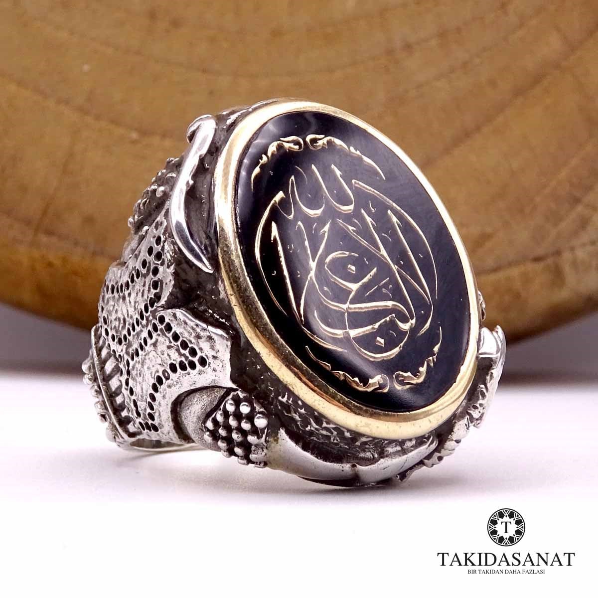 Bir Yanda Kayı Alplerinden Turgut Alp Diğer Yanda Düşman askeri'nin Birbirleriyle yüz yüze çarpışma sahnesini anlatan bütün kıyafet, zırh ve kullandıkları silah detayına kadar işlenmiş ve betimlenmiş çok özel bir el yapımı yüzük modeli, ayrıca içeriğinde Selçuklu Kartalı Ay-Yıldız Detayı..