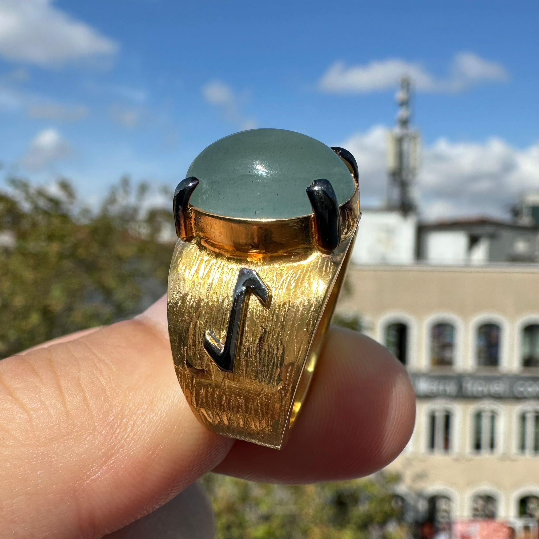 TAMAMEN EL İŞÇİLİĞİ İLE TAŞIN ÖLÇÜSÜNE UYGUN OLARAK SIFIRDAN YAPILMIŞTIR. TAŞ DOĞAL AQUAMARİN TAŞTIR VE TONLARI DOKULARI HER SİPARİŞ İÇİN FARKLILIK ARZ EDEBİLİR. YAN KISIMLARDA BULUNAN ÖZEL MOTİFLER TAMAMEN İSTEĞE BAĞLI OLARAK YAPILMIŞTIR VE HERHANGİ BİR HARF VEYA BAŞKA LOGO MOTİF VS İŞLENEBİLİR