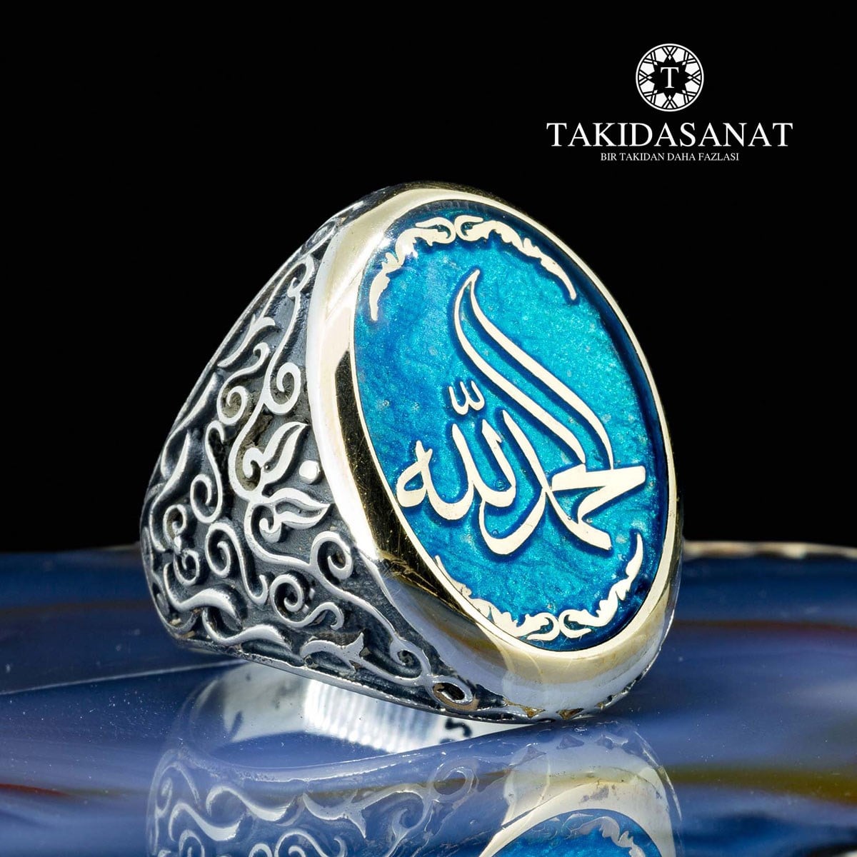 Elhamdülillah Yazılı Büyük Oval Gümüş Yüzük (Y9158)
