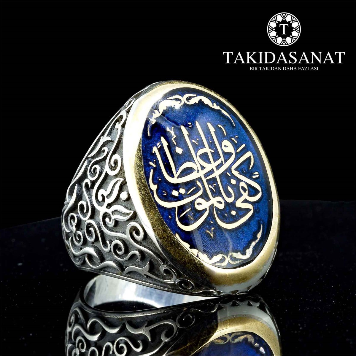 "KEFA BİL MEVTİ VAİZAN" yani "KİŞİYE NASİHAT OLARAK ÖLÜM KAFİDİR" yazısı hat sanatıyla yüzükte yazılıdır